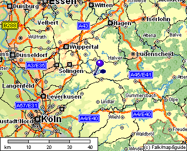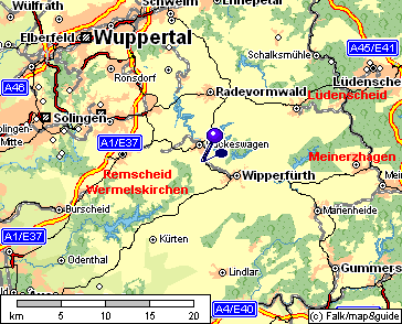 Facendo clic sui punti di partenza indicati in rosso viene visualizza una precisa descrizione per raggiungere Hückeswagen