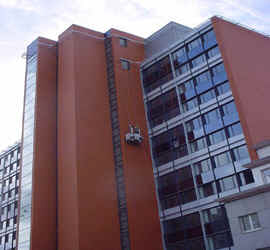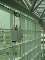 per la pulitura della facciata in vetro, sospensione a fune sul carrello a tetto
