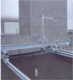 per il sostegno del ponteggio di lavoro. Per l'aggancio e lo sgancio delle funi, il braccio è realizzato ribaltabile. Il sistema di guide viene fissato sulla copertura in calcestruzzo con mensole tassellate. |