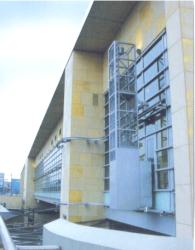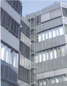 La scala a torre mobile è particolarmente adatta per alte facciate con grandi superfici. Le piattaforme di lavoro pieghevoli sono disposte ogni 2 m a seconda della configurazione delle facciate. I carrelli sono realizzati in modo che si possano evitare anche gli angoli. Lo spostamento avviene manualmente, facendo leva sulla facciata o, su richiesta, meccanicamente. Il freno a pressione di molle può essere azionato da ogni piattaforma. L'ingresso può avvenire dal tetto o dal pavimento.